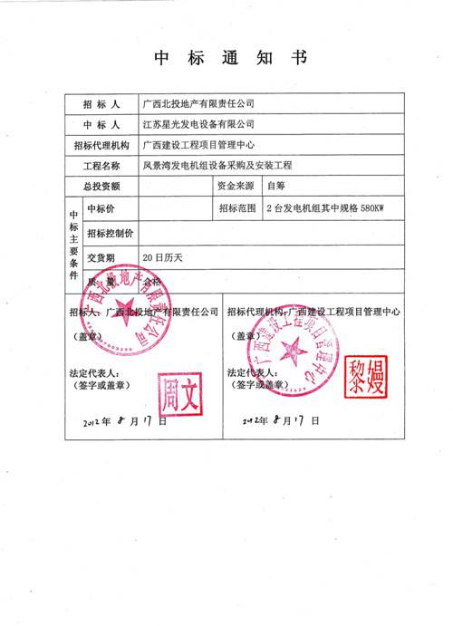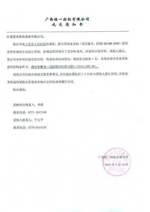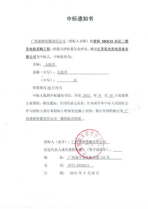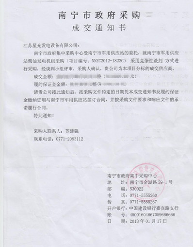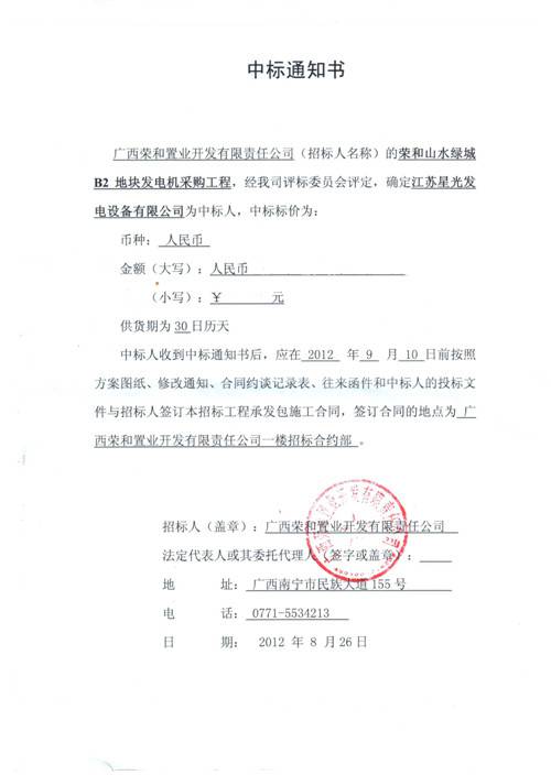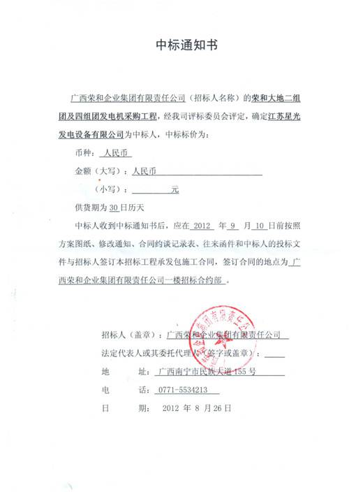 中標(biāo)通知書(shū)