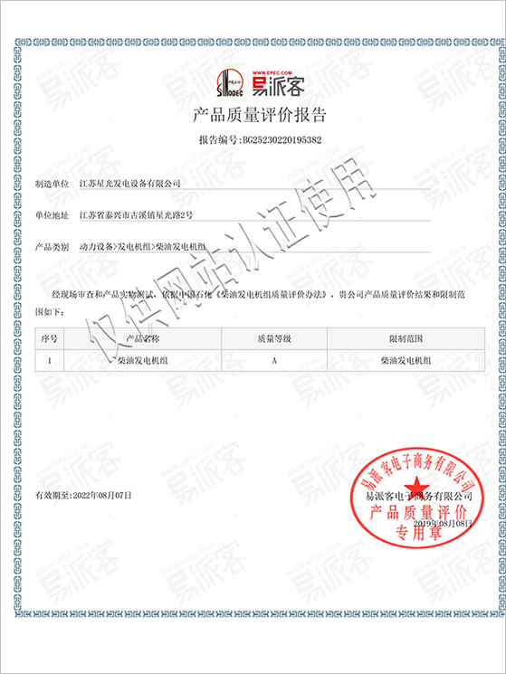 星光發(fā)電機榮譽