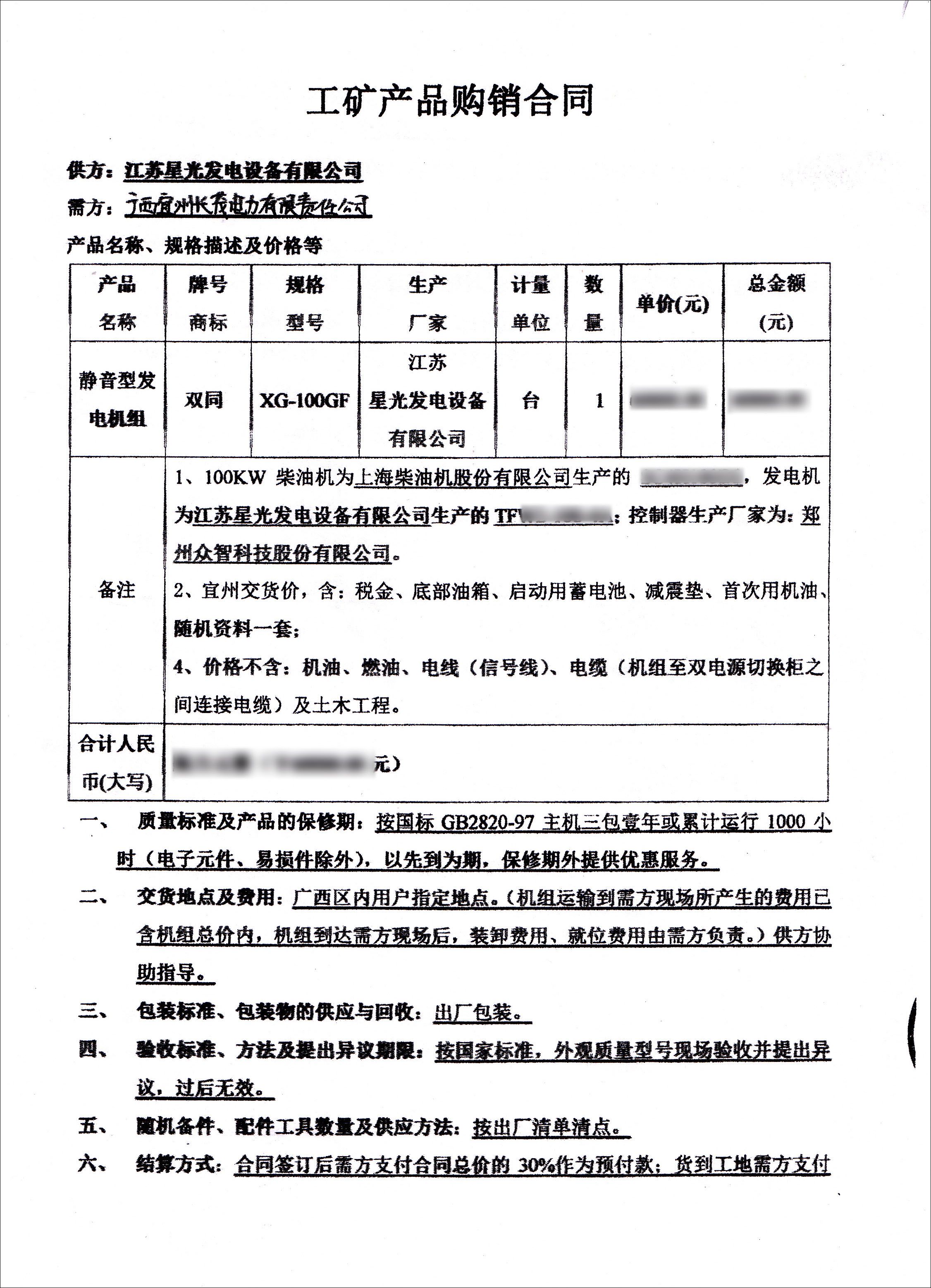 6月10日,廣西宜州長(zhǎng)茂電力公司(主要經(jīng)營(yíng)電力投資開(kāi)發(fā)、電力檢修、建筑材料銷(xiāo)售等)在我公司采購(gòu)一臺(tái)配置為上柴發(fā)動(dòng)機(jī)配星光發(fā)電機(jī)的100KW靜音型上柴發(fā)電機(jī)組。我公司將按合同規(guī)定為其提供優(yōu)質(zhì)的產(chǎn)品和服務(wù),絕不以次充好,建立用戶檔案,可定期或隨時(shí)上門(mén)為機(jī)組進(jìn)行檢查、保養(yǎng)及維修,以及時(shí)消除機(jī)組隱患,保證機(jī)組處于最佳運(yùn)行狀態(tài)。更多發(fā)電機(jī)詳情歡迎撥打星光熱線:13878198542