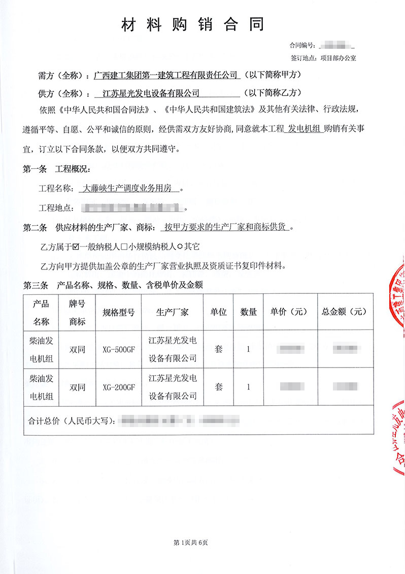 江蘇星光動(dòng)力集團(tuán) >> 新聞動(dòng)態(tài) >> 恭喜我公司和廣西建工集團(tuán)第七次合作,再次簽訂200kw/500kw柴油發(fā)電機(jī)組兩臺(tái)