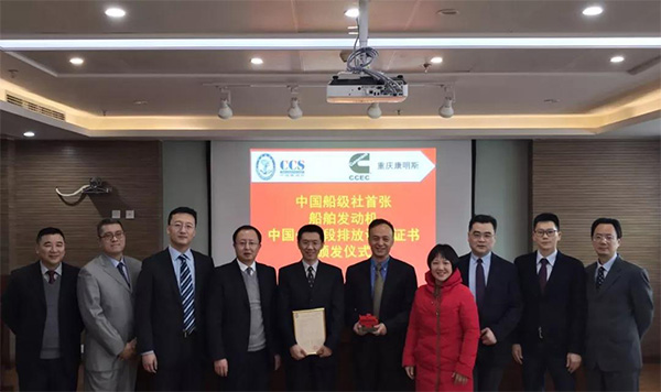 1月10日下午,中國船級社(CCS)向重慶康明斯發(fā)動機有限公司(簡稱“重慶康明斯”)頒發(fā)了國內(nèi)首份船舶發(fā)動機中國第一階段排放認可證書,這標(biāo)志著國內(nèi)船舶行業(yè)在踐行綠色航運理念方面邁出了新的步伐。