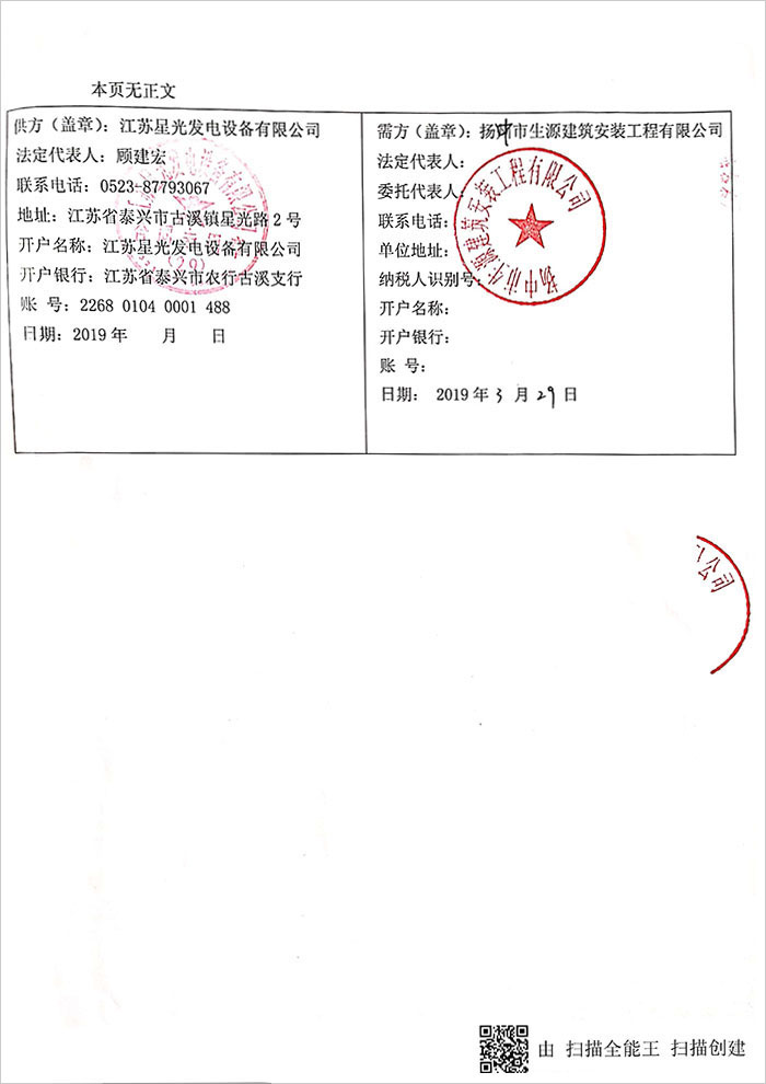 江蘇星光動力集團 >> 新聞動態(tài) >> 恭喜我公司和揚中市生源建筑安裝公司第二次合作,成功簽訂一臺350KW上柴發(fā)電機