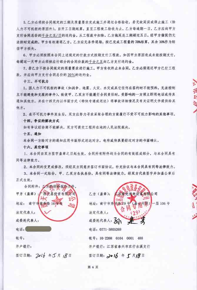 2016年5月18日,廣西天昌投資有限公司與我公司簽訂東盟中央城C區(qū)發(fā)電機(jī)機(jī)房排煙降噪環(huán)保工程施工合同,我公司為其提供一臺(tái)630KW康明斯發(fā)電機(jī)的機(jī)房噪聲、廢氣綜合治理、環(huán)保工程及機(jī)房照明、排風(fēng)工程的設(shè)計(jì)及施工。合同如下: