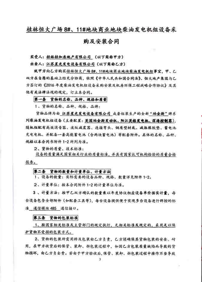 江蘇星光動(dòng)力集團(tuán) >> 新聞動(dòng)態(tài) >> 桂林桂加房地產(chǎn)有限公司1000KW,1200KW珀金斯發(fā)電機(jī)組采購合同