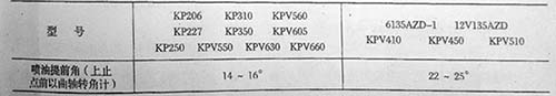 135基本型柴油發(fā)動機的噴油提前角規(guī)定如下: