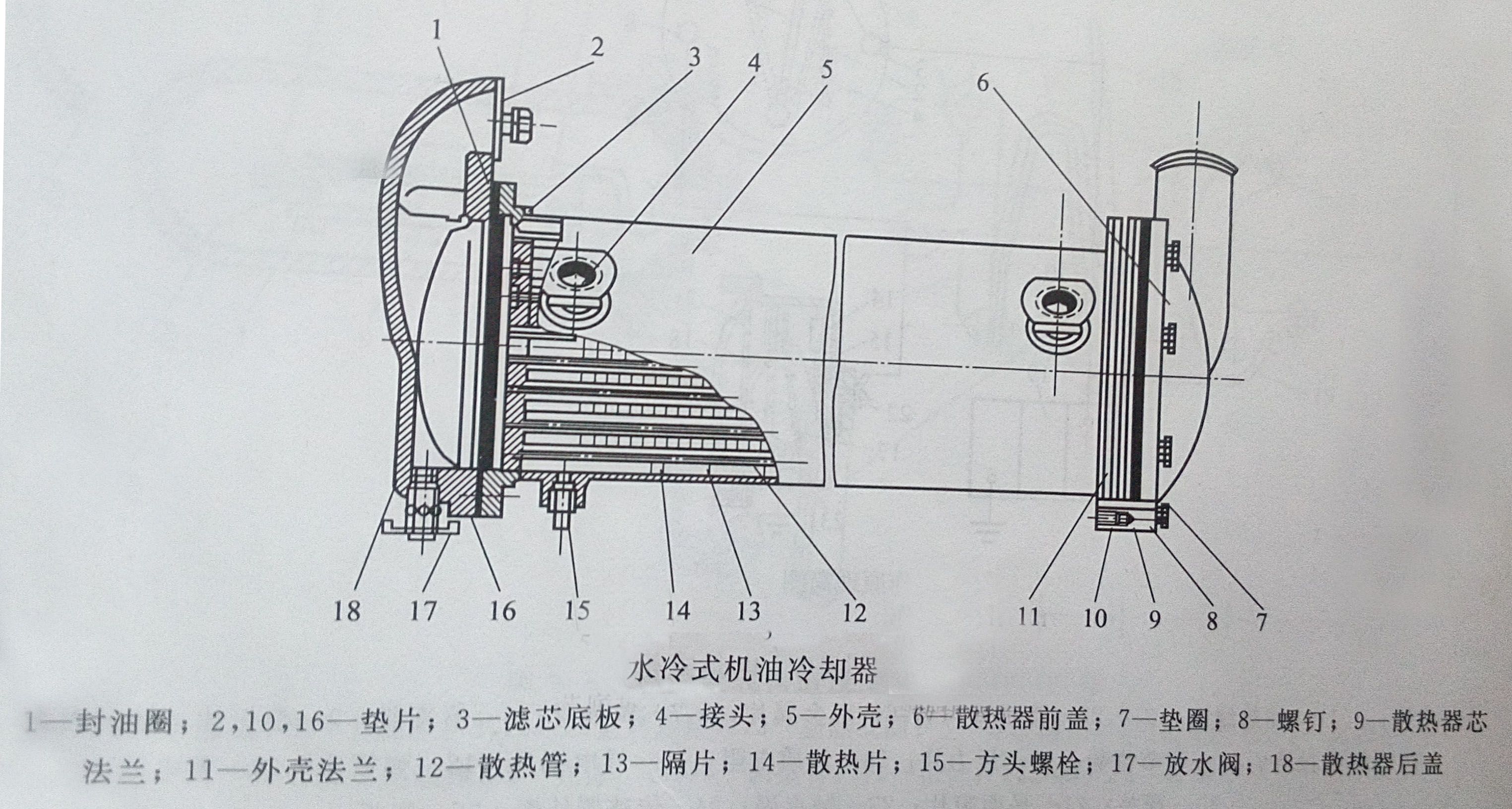 為了保持機油在適宜的溫度范圍內工作 ,柴油機潤滑油路一般都裝有機油散熱裝置,對機油進行強制冷卻。機油散熱裝置可分為兩類:以空氣為冷卻介質的機油散熱器和以水為冷卻介質的機油冷卻器。