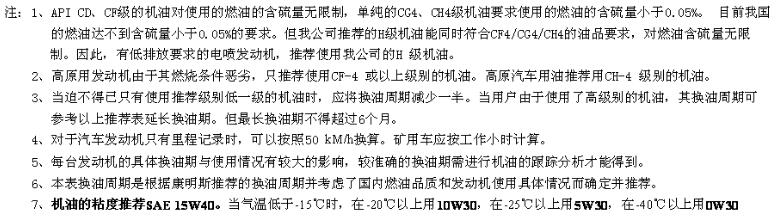 星光公司提醒各位用戶:在高原必須使用CF4或以上級別的機油。因為在高原發(fā)動機燃燒情況惡化,機油污染很快,CF4級別以下的機油壽命達(dá)不到250h,換油期應(yīng)縮短一半。超過換壽命的機油將使發(fā)動機得不到正常潤滑,磨損加劇,出現(xiàn)早期故障。