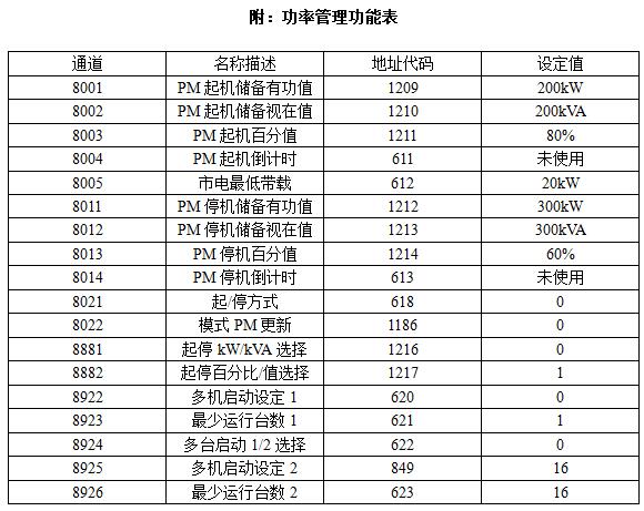 3)發(fā)電機(jī)組潤(rùn)滑油壓低、潤(rùn)滑油溫度高、冷卻水溫高、冷卻水?dāng)嗨?、燃油量過(guò)低、超速、超頻、低頻、速度信號(hào)丟失、自啟動(dòng)失敗、過(guò)電流、電壓過(guò)高或過(guò)低、廠用電相序錯(cuò)誤。發(fā)電機(jī)相序錯(cuò)誤、發(fā)電機(jī)相序錯(cuò)誤等保護(hù)停機(jī)功能。