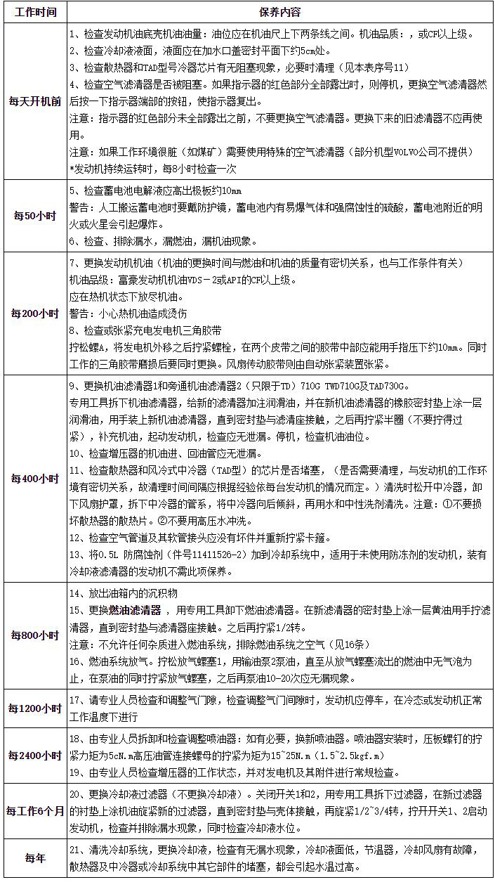 柴油發(fā)電機組維護保養(yǎng)內(nèi)容表