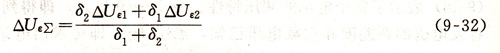 假定兩臺發(fā)電機(jī)調(diào)壓特性如圖9. 20的特性1和特性2所示,它們的調(diào)差率和失靈區(qū)各為δ1、δ2△Uε1、△Uε2。和前面一樣,采用把兩特性橫坐標(biāo)相加的方法,就可得到整個電站的調(diào)壓特性3,特性3的失靈區(qū)為△Uε,它的大小顯然和每臺發(fā)電機(jī)調(diào)壓特性的失靈區(qū)及調(diào)差率有關(guān)。利用式(9-28).不難求出電站的調(diào)壓特性失靈區(qū)為