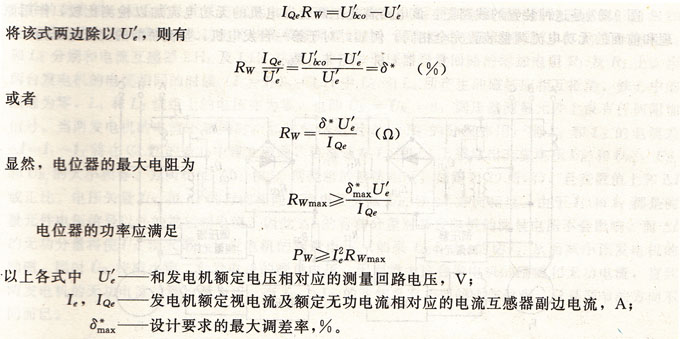 對(duì)于已經(jīng)具備無功電流均衡裝置的發(fā)電機(jī)組,改變其可調(diào)電位器Rw的阻值,就可改變其調(diào)差率。配合以空載電壓的整定,使各并聯(lián)發(fā)電機(jī)組具有相同的電壓調(diào)整特性并不困難。對(duì)于沒有無功電流均衡裝置的發(fā)電機(jī),就需要加裝調(diào)差裝置,其計(jì)算也不復(fù)雜。